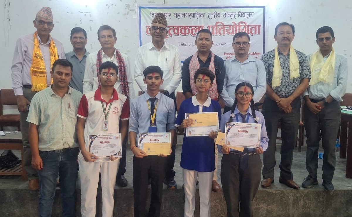विराटनगर/ विराटनगर महानगरपालिकाले आयोजना गरेको महानगरस्तरीय अन्तरविद्यालय वक्तृत्वकला प्रतियोगितामा आदर्श माविकी छात्रा रञ्जना कोइराला प्रथम भएकी छन्
