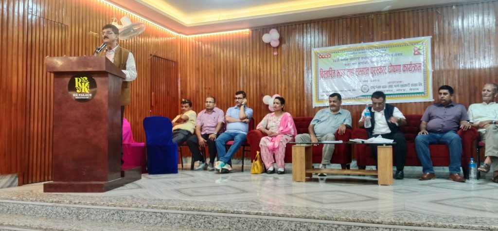 बार्षिक साधारणसभामा पेश गरिने नीति, कार्यक्रम, बजेट तथा कार्यविधि निर्माण सम्वन्धी विस्तारित मञ्च तथा सम्मान पुरस्कार घोषणा कार्यक्रममा आज तीन वटा पुरस्कार वितरण गरिने जानकारी दिईएको सहकारीका सचिव ओम सुवेदीले जानकारी दिनुभयो ।