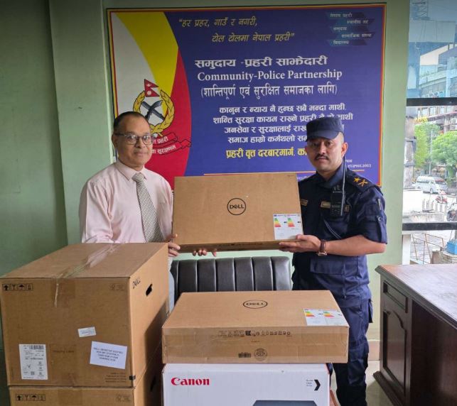 काठमाडाैं। सांग्रिला डेभलपमेन्ट बैंकले प्रहरी वृत्त दरबारमार्गलाई दुई थान कम्प्युटर, एउटा स्क्यानर र फोटोकपीसहितको प्रिन्टर (थ्री इन वान) मेसिन सहयोग गरेको छ।