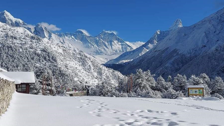 सोलुखुम्बु – हरेक वर्षको असोज अन्तिम हप्तामा हिउँ पर्ने सगरमाथा क्षेत्रमा यस वर्ष असोजको तेश्रो हप्तामै हिउँ परेको छ । सोलुखुप्बुको नाम्चेबजारदेखि गोक्यो, दिङ्बोचे र फोर्चेसम्मको बाटोमा पर्यटक, व्यापारी र स्थानीय चहलपहल हुने क्षेत्रमा हिउँ परेपछि खुम्बु क्षेत्र सेताम्य भएको छ । यस क्षेत्रमा असोजमा हिउँ पर्नु दुर्लभ मानिन्छ ।
