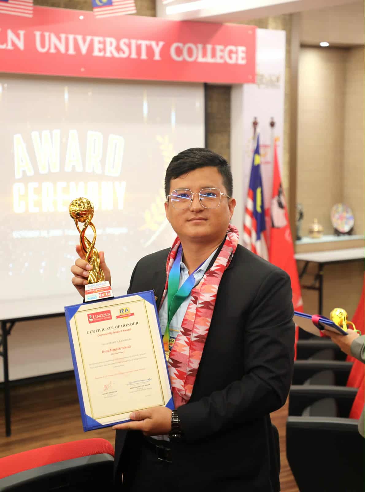 अवार्ड ग्रहण गर्नका लागि विद्यालयका संस्थापक अध्यक्ष पर्वत राई गत हप्ता सिंगापुर, थाइल्याणड हुँदै मलेसियाको पुगेका थिए । विद्यालयका संस्थापक अध्यक्ष राई सानो उमेरदेखि नै शिक्षाक्षेत्रबाट संलग्न हॅदै निजी विद्यालयहरुको साझा छाता संगठन नेसनल प्याब्सनको पालिकाको नेतृत्व गर्दै हाल मोरङ जिल्ला कार्यसमिति उपाध्यक्ष र केन्द्रीय उप-समिति अन्तर्गत इभेन्ट म्यानेजमेन्टका सदस्य पनि रहेका छन ।