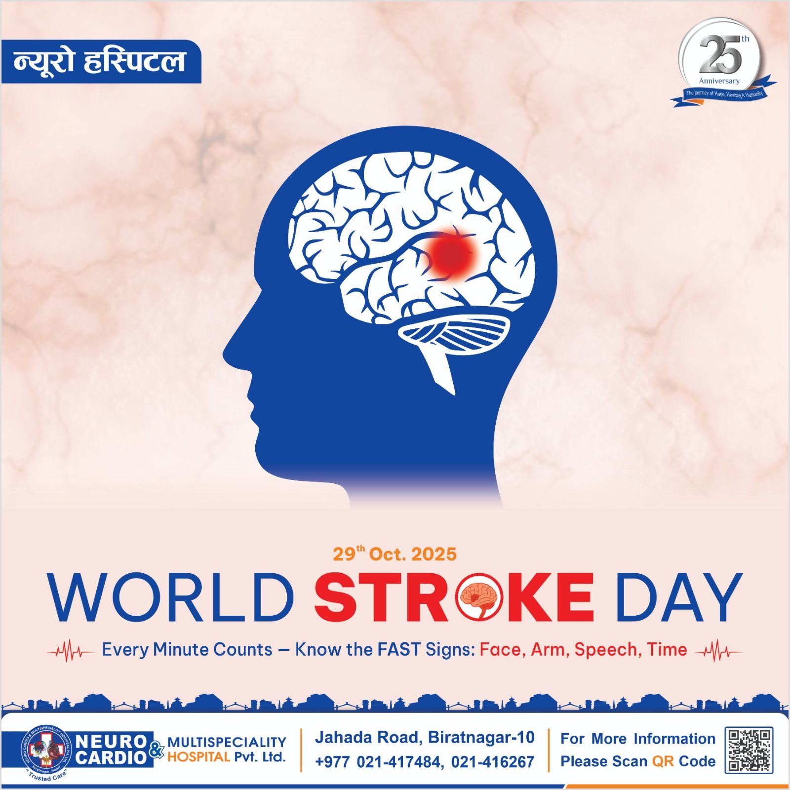 अक्टोबर २९ मा मनाइने विश्व स्ट्रोक दिवस २०२५ को अवसरमा हस्पिटलले स्ट्रोक सम्बन्धी जनचेतना अभिवृद्धि गर्न, रोकथामका उपायबारे जानकारी दिन, र बिरामीको उपचार तथा रिकभरीलाई सघाउन विभिन्न विशेष सेवा र छुटका कार्यक्रमहरू ल्याएको हो।