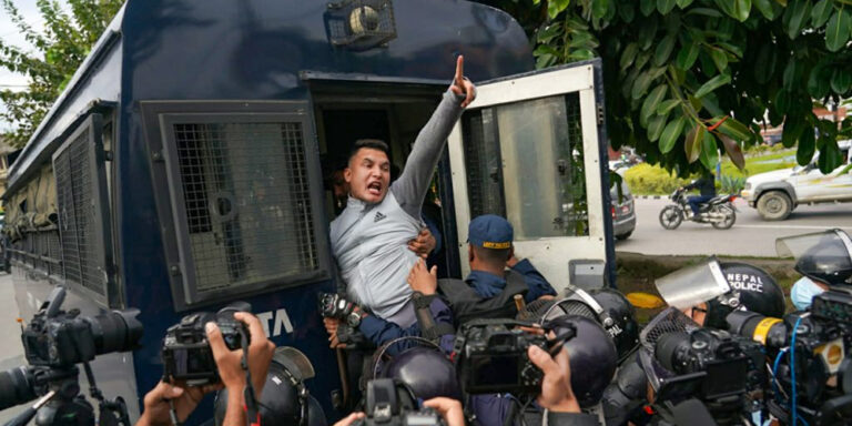 काठमाडौं । काठमाडौंको माइतीघरमा प्रदर्शन गर्न पुगेका एक युवकलाई प्रहरीले पक्राउ गरेको छ । निवर्तमान प्रधानमन्त्री केपी शर्मा ओली, निवर्तमान गृहमन्त्री रमेश लेखकसहितलाई पक्राउ गर्नुपर्ने माग गर्दै प्रदर्शनमा उत्रिएका युवाहरूलाई प्रहरीले नियन्त्रणमा लिएको हो ।