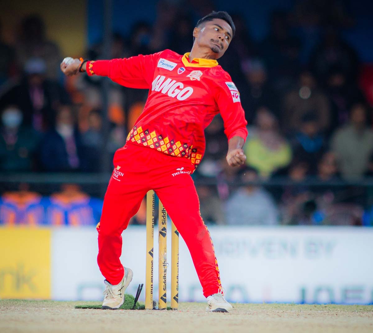 सुदूरपश्चिमलाई कम स्कोरमा रोक्न बलिङमा लुम्बिनीका कप्तान रोहितकुमार पौडेलले ह्याट्रिक पूरा गर्नु भएको छ । ११ ओभरको चौथो, पाँचौ र छैटौं बलमा क्रमश सुदूरपश्चिम रोयल्सका कप्तान दीपेन्द्रसिंह ऐरी, दीपक बोहरा र पुनित मेहराको विकेट लिँदै पौडेलले ह्याट्रिक पूरा गर्नु भएको हो । । यस्तै शेर मल्ल र रूवेन ट्रुम्पलम्यानले तीन तीन तथा तिलक भण्डारीले एक विकेट लिनु भयो ।