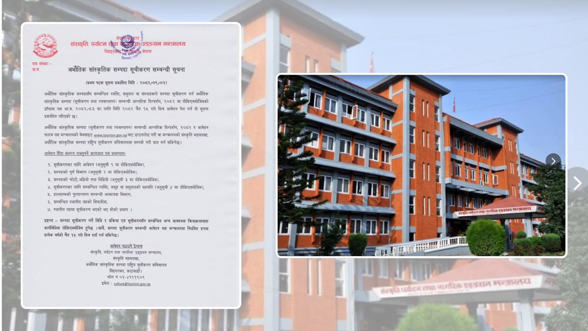 साथै मन्त्रालयको संस्कृति महाशाखाअन्तर्गत अभौतिक सांस्कृतिक सम्पदा राष्ट्रिय सूचीकरण सचिवालयमा सम्पर्क गरी पनि आवश्यक कागजात प्राप्त गर्न सकिने जनाइएको छ।