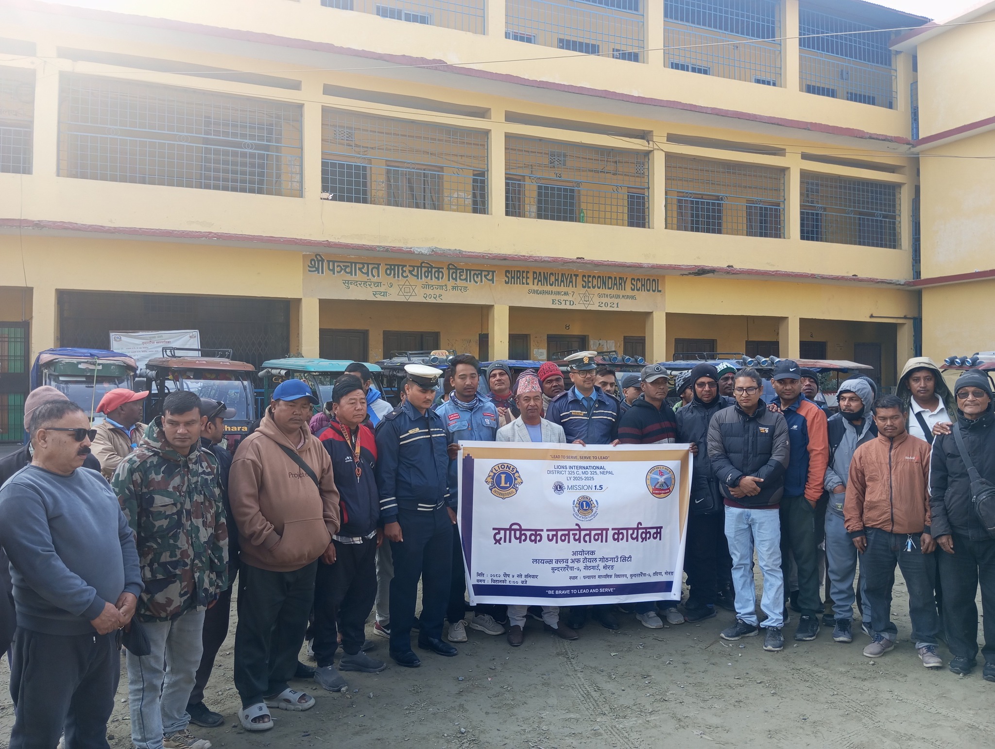 गोठगाउँः लायन्स क्लब अफ रोयल गोठगाउँ सिटीको आयोजनामा शनिबार ट्राफिक सचेतनामूलक कार्यक्रम सम्पन्न भएको छ । सुन्दरहरैंचा–७ स्थित पञ्चायत माध्यमिक विद्यालय गोठगाउँमा भएको सचेतनामूलक कार्यक्रममा प्रहरी सहायक निरीक्षक नारायणप्रसाद लुइँटेलले सहजीकरण गरेका थिए । उनले सहभागीहरूलाई सडक सुरक्षासम्बन्धी सैद्धान्तिक तथा प्रयोगात्मक जानकारी दिएका थिए ।