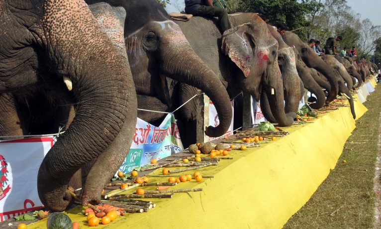 पूजापछि हात्तीलाई विभिन्न परिकारहरू खुवाइएको थपलियाले बताउनुभयो । वनभोजमा कुची, सक्खर, पाउरोटी, उखुलगायत हात्तीलाई मनपर्ने १६ प्रकारका खानेकुरा राखिएको थियो ।