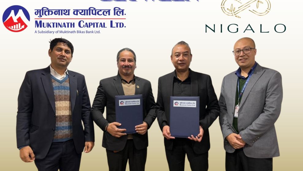 काठमाडौँ / निगालो होटल लिमिटेडले साधारण सेयर जारी गर्ने प्रक्रिया अघि बढाउन बिक्री प्रबन्धकका रूपमा मुक्तिनाथ क्यापिटल लिमिटेडलाई नियुक्त गरेको छ । एक औपचारिक कार्यक्रममा निगालो होटल लिमिटेडका तर्फबाट अध्यक्ष टिका राज बरालले र मुक्तिनाथ क्यापिटलको तर्फबाट प्रमुख कार्यकारी अधिकृत कबिन्द्र ध्वज जोशीले सम्झौतापत्रमा हस्ताक्षर गरेका छन् । उक्त कार्यक्रममा चार्टर्ड अकाउन्टेण्ट अनिल पौडेलको पनि सभागिता रहेको थियो ।