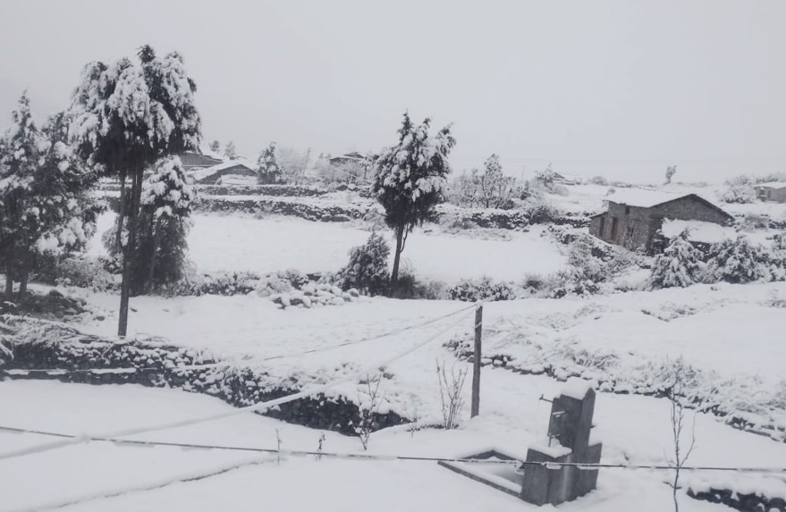 बैतडी । बैतडीमा बुधबार बिहानैदेखि बाक्लो हिमपात भएको छ । जिल्लाका उच्च भेग सिगास, खोडपे, अनारखोली, ढोल्यामोडमा हिमपात भएको हो । हिमपातका कारण अत्यधिक चिसो बढेपछि जिल्लाको जनजीवन प्रभावित भएको छ । हिमपात भएपछि गहुँलगायत हिउँदे बाली सप्रिनेमा यहाँका किसान ढुक्क भएका स्थानीय राजबहादुर टेरले बताए ।
