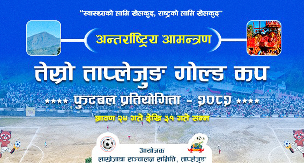 यता यसवर्षको ताप्लेजुङ गोल्डकप फुटबल प्रतियोगितामा भारत, सिलिगुढीको एकसहित आठ टोली सहभागी हुने भएका छन् । आयोजकका अनुसार सिलिगुढीको लेजण्ड फुटबल एकेडेमी, इटहरीको द योङ ब्रदर्स क्लब, पोखराको साहारा क्लब, झापाको रेड स्टार फुटबल क्लब, काठमाडौंको चर्च ब्वाइज फुटबल क्लब सहभागी हुने छन् ।