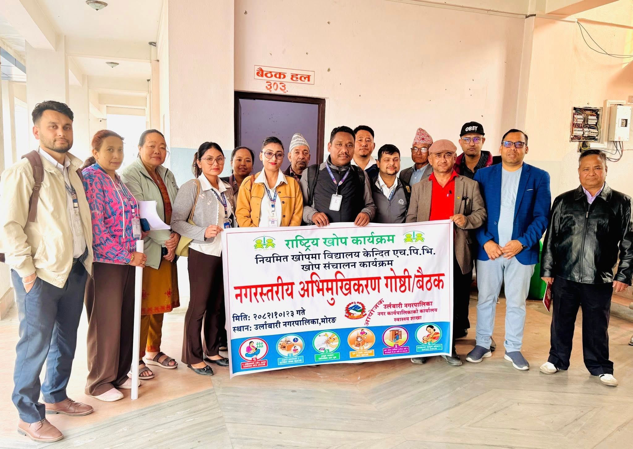 उर्लाबारी। उर्लाबारी नगरपालिकामा विद्यालयकेन्द्रित नियमित खोप कार्यक्रमअन्तर्गत एचपीभी (HPV) खोप अभियान सञ्चालनको तयारी तीव्र बनेको छ। सोही तयारीस्वरूप पालिकास्तरीय खोप समन्वय समिति तथा सरोकारवालालाई लक्षित गरी एकदिने अभिमुखीकरण गोष्ठी सम्पन्न भएको छ।