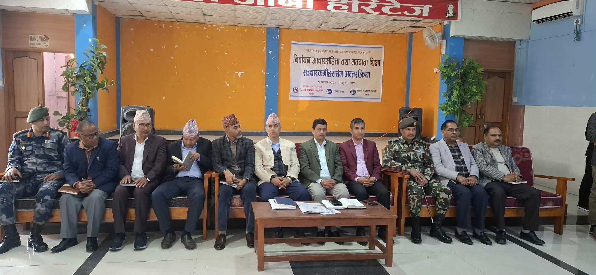 भद्रपुरमा आयोजित ‘निर्वाचन आचारसंहिता तथा मतदाता शिक्षा’ विषयक कार्यक्रममा बोल्दै उनले परेका सबै उजुरीमाथि कारबाही प्रक्रिया अगाडि बढाइएको जानकारी दिए। निर्वाचनलाई स्वच्छ, निष्पक्ष र भयरहित बनाउन आचारसंहिताको पूर्ण पालना अनिवार्य रहेको उनले स्पष्ट पारे।