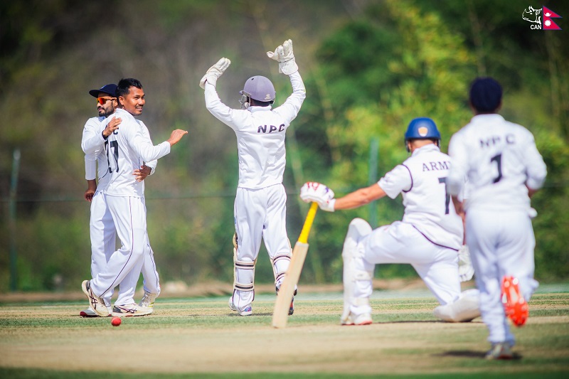 आर्मीले दिएको २२७ रनको लक्ष्य पुलिसले खेलको तेस्रो तथा अन्तिम दिन ६ विकेट गुमाएर भेटायो । पुलिसका रशिद खानले ८१, कुशल भुर्तेलले ५१ रन बनाए । आर्मीका शाहब आलम र पवन कार्कीले २/२ विकेट लिए ।