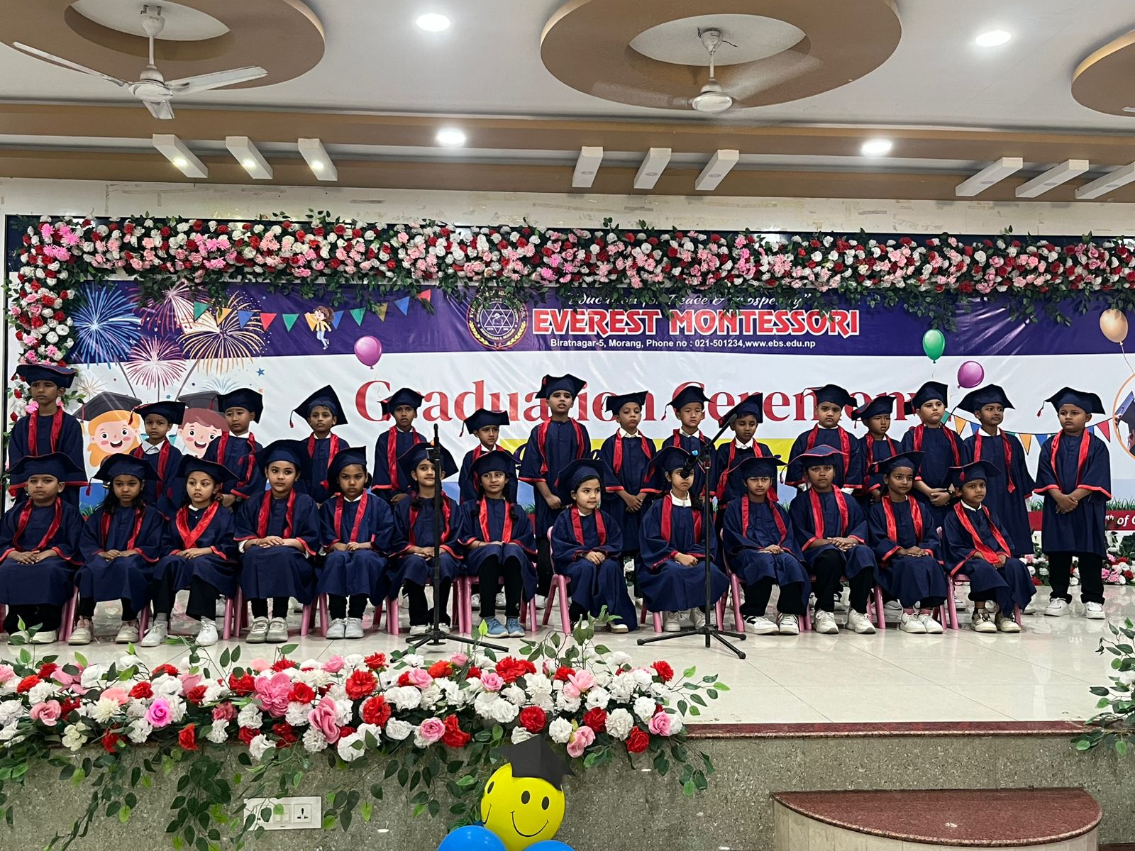 विराटनगर, चैत १८ — विराटनगर–५ स्थित एभरेष्ट सेकेन्डरी स्कुलले कक्षा १ उत्तीर्ण गरेका विद्यार्थीहरूलाई एक समारोहबीच दीक्षित गरेको छ। विराटनगरकै कन्चनजङ्घा बैंक्वेटमा आयोजित दीक्षान्त कार्यक्रममा विद्यालयका प्रिन्सिपल टिकाराम पुरी, भाइस प्रिन्सिपल टीएन भण्डारी र कुन्दन पुरीले विद्यार्थीहरूलाई प्रमाणपत्र प्रदान गरेका थिए।