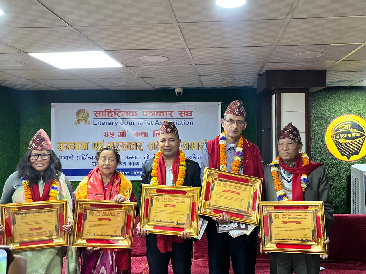 कार्यक्रमका प्रमुख अतिथि ललितकला प्रज्ञा प्रतिष्ठानका पूर्व उपकुलपति केके कर्माचार्य, आयोजक संस्थाका अध्यक्ष राधेश्याम लेकाली, वरिष्ठ साहित्यकार नरेन्द्रबहादुर श्रेष्ठ, श्रीओम श्रेष्ठ रोदन, प्रमोद प्रधानलगायतले नवोदितलाई टोपी, माला, दोसल्ला ओढाएर सम्मानपत्र प्रदान गरेका थिए ।