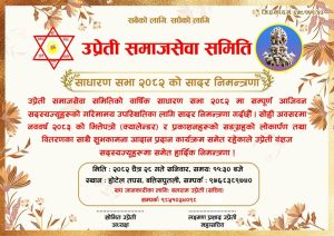 काठमाडौं । उप्रेती समाजसेवा समितिले आफ्नो वार्षिक साधारण सभा २०८२ आयोजना गर्ने भएको छ। समितिले एक औपचारिक सूचना जारी गर्दै सम्पूर्ण आजीवन सदस्यहरूलाई गरिमामय उपस्थितिका लागि हार्दिक निमन्त्रणा गरेको जनाएको छ।