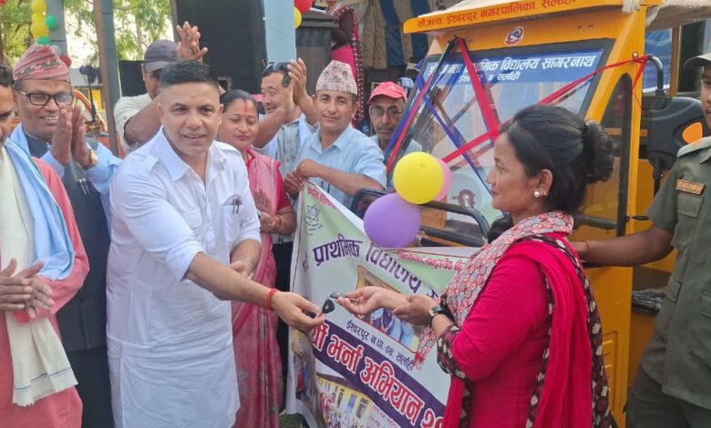 ई–रिक्सा प्राप्त गर्ने विद्यालयहरूमा श्री जनता प्राथमिक विद्यालय सागरनाथ (ईश्वरपुर–४), चन्द्रकमारी प्राथमिक विद्यालय धनपट्टीडाँडा (ईश्वरपुर–७), जनता प्राथमिक विद्यालय खोरियाटोल (ईश्वरपुर–९), जनशक्ति प्राथमिक विद्यालय बेला (ईश्वरपुर–१०), जनता माध्यमिक विद्यालय करमोहान (ईश्वरपुर–११), जनता प्राथमिक विद्यालय नयाँटोल (ईश्वरपुर–१२), जनता आधारभूत विद्यालय घाटटाल (ईश्वरपुर–१३) र जनता प्राथमिक विद्यालय हरकठवा (ईश्वरपुर–१४) रहेका छन्।