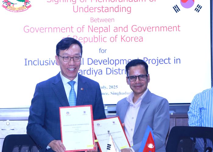 काठमाडौँ, साउन २ गते । नेपाल सरकार र कोरियाली सरकारबीच बर्दिया जिल्लामा समावेशी ग्रामीण विकास परियोजना (आइआरडिपी) कार्यान्वयनका लागि सम्झौतापत्र (एमओयु) मा हस्ताक्षर भएको छ ।